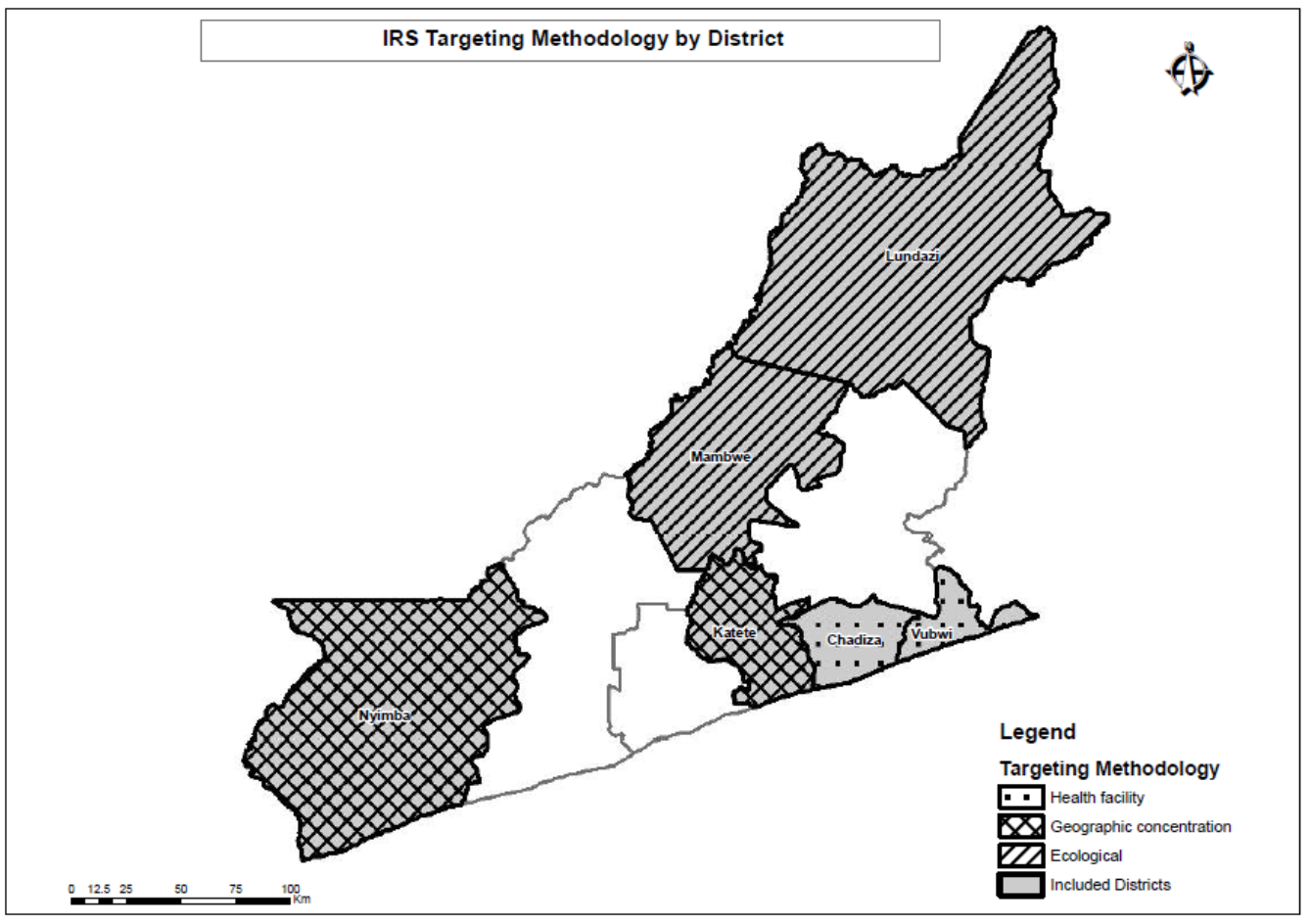 In 2017, Akros worked with the Zambia National Malaria Elimination Centre (NMEC), the Africa Indoor Residual Spray (AIRS) Project implemented by Abt Associates, and the U.S. President’s Malaria Initiative (PMI) to conduct a comparison control trial of IRS prioritization strategies. The question was simple: If we do not have enough resources to spray every house, where should we spray to see the greatest decreases in malaria incidence? Should we spray one condensed geographic area? Should we spray the areas near the health centers with the highest burden of malaria? Or, should we spray the areas predicted to have the most mosquitoes? Each of these questions defined an arm of the study; one arm targeted IRS by concentrating it in one geographic area, one arm targeted IRS by prioritizing its delivery by health facility-measured malaria burden, and one arm targeted IRS by prioritizing its delivery by predicted mosquito density due to ecological factors. The NMEC implemented each arm in two districts of Eastern Province during the 2017 IRS operations.