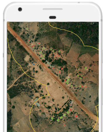 Frontline workers use maps loaded in the application to guide field delivery. Intervention managers use the web-based interface to track and monitor teams, allowing for active performance monitoring and course correction in near real time.